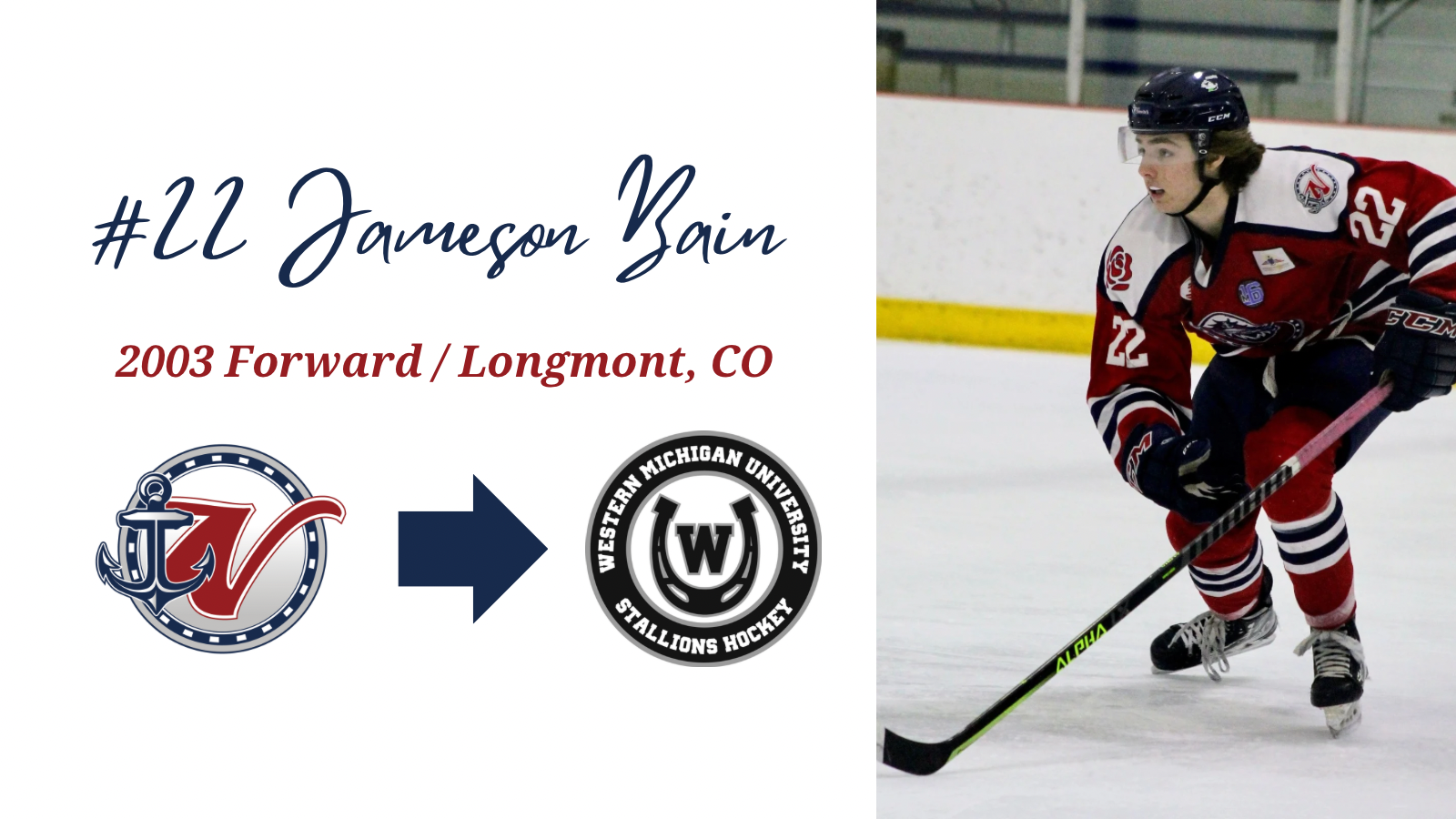 The Norwich Sea Captains of the North American 3 Hockey League (NA3HL) are thrilled to announce that forward Jameson Bain has committed to attend Western Michigan University this fall to continue his academic and hockey careers. Bain joined the Sea Captains prior to the team’s inaugural season in 2021. Sea Captains head coach Kevin Cunningham executed a trade with the Danbury Jr Hat Ticks to obtain Bain’s rights in April of 2021. Bain had played the previous season for Cunningham on the Jr Hat Tricks. Over the course of his four seasons in the NA3HL, Bain played a total of 168 games and recorded 27 points on the strength of 11 goals and 16 assists. The 2003 Longmont, Colorado native will major in Business Management and play for the Stallions’ American Collegiate Hockey Association Division I program. The Stallions play in the highly competitive Great Lakes Collegiate Hockey League.